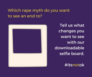 Today we are asking you to get on your socials and challenge a rape myth or post a positive statement. Feeling creative? We have created a blank sheet for you to write your own message, marked up with the #ItsNotOK and SASVAW logos. Don’t know what to say? No problem, we have a range of pre-written statements you can share on your socials.